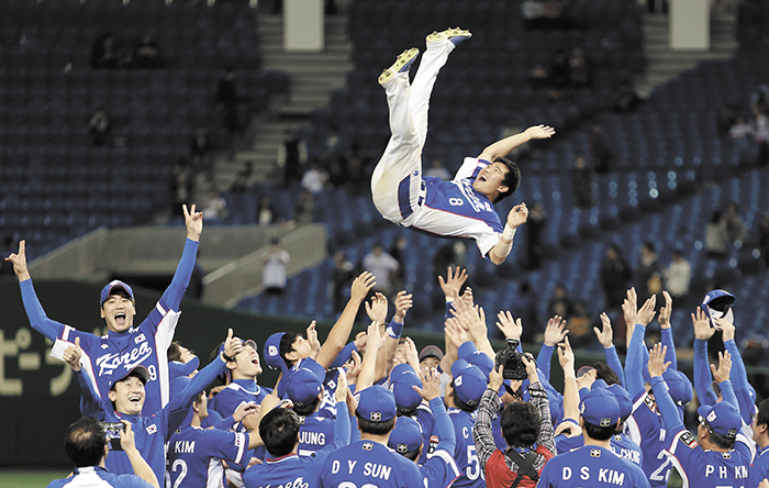 Registrado quedará el cuadrangular de tres carreras de Park Byung-ho en el quinto inning en el Tokyo Dome de Japón, después que Kim Hyun-soo había dado doble productor de dos anotaciones, para combinarse a un rally de cinco anotaciones que selló la victoria coreana.
