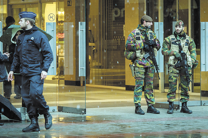 Policías y soldados fuertemente armados patrullan las intersecciones importantes en la capital belga, una ciudad de más de un millón de personas que también es el lugar donde tienen su cuartel general dos importantes instituciones internacionales, la Unión Europea y la OTAN, así como oficinas de muchas empresas multinacionales.