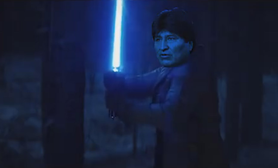 En Facebook tienen la página «Sí Bolivia» en que se difunden imágenes modificadas de los personajes de la película en la que Morales y colaboradores representan el lado de «la fuerza».