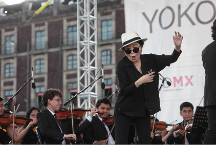 La enorme obra de Yoko Ono contempla también creaciones hechas en conjunto con habitantes de los alrededores de la popular Plaza de las Tres Culturas de Tlatelolco, escenario de una masacre de estudiantes en 1968, y con otros artistas urbanos como grafiteros con los que intervendrá algunos espacios del Centro Histórico de la capital.