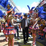 Un agitado baile a ritmo de samba que toca en vivo una banda desde lo alto de un camión que sirve de escenario, mueve en la calle a un caleidoscopio conformado por miles de piratas, vikingos, gatos, conejos, payasos, cavernícolas, faraones, bebés, insectos, mariposas … es mucha, mucha piel.
