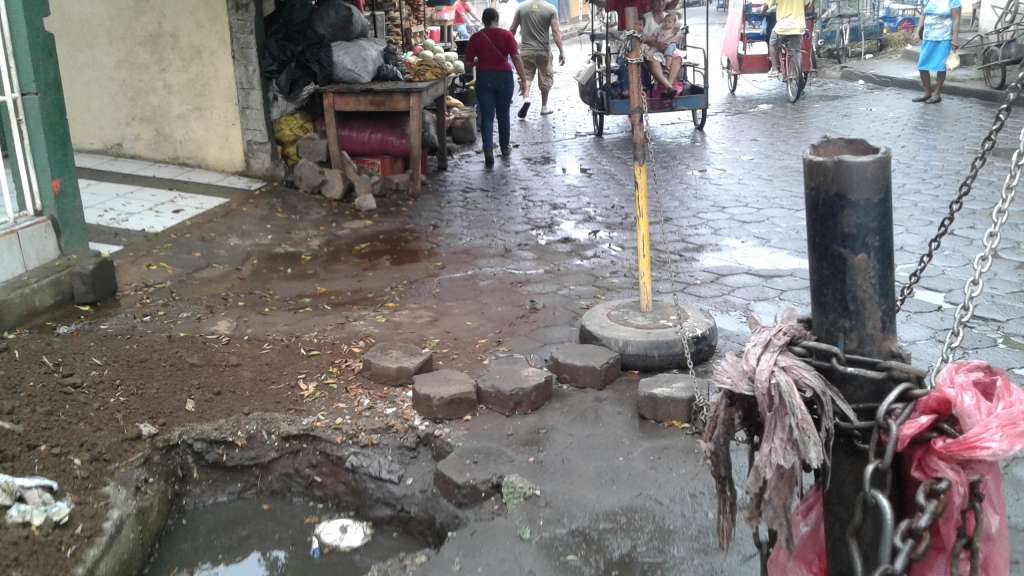 Uno de las charcas más representativas se ubica frente al hostal ‘El Papayal’, en las inmediaciones del mercado de mayoreo ‘El Bisne’. Una enorme charca de media calle provoca que los transeúntes se expongan a los vehículos que ahí circulan.