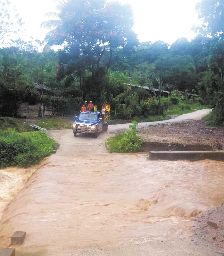 Un momento de emergencia vivieron a las 5:00 p.m. del lunes en la comunidad Las Brisas cuando un ciudadano intentó pasar la rampa en su motocicleta y fue arrastrado con todo y vehículo por la corriente, pero él logró salir de las aguas y con ayuda de otros ciudadanos recuperó río abajo la motocicleta.