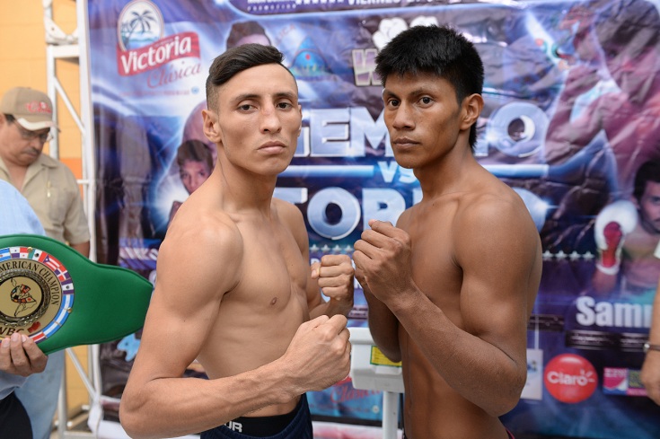 Félix “El Gemelo” Alvarado se paró en la báscula, liviano, para detenerla en 108 libras, y levantó los brazos como lo suelen hacer los boxeadores cuando cumplen, enérgico, a la vez que amenazaba con la mirada al mexicano Roberto Rodríguez, el cual no tuvo problemas con el peso, de modo que las condiciones están dadas para que esta noche ambos disputen el Título Latino del Consejo Mundial de Boxeo (CMB).