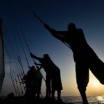 Marineros participan en una sesión de entrenamiento previo a la tradicional carrera de vela en la isla de Sir Bu Nair, en Dubai. LA PRENSA/AFP