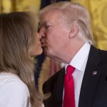 El presidente de los Estados Unidos, Donald Trump, besa a la primera dama Melania Trump, durante un evento del Día de la Madre en la sala este de la Casa Blanca, en Washington. LA PRENSA/AFP