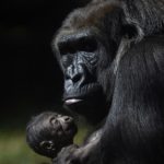 Una gorila hembra sostiene a su cría en el parque zoológico en Belo Horizonte, Brasil. LA PRENSA/AFP