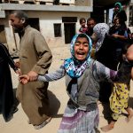 Una menor iraquí llora durante un desplazamiento en el oeste de Mosul tras una ofensiva militar de las fuerzas gubernamentales. LA PRENSA/AFP