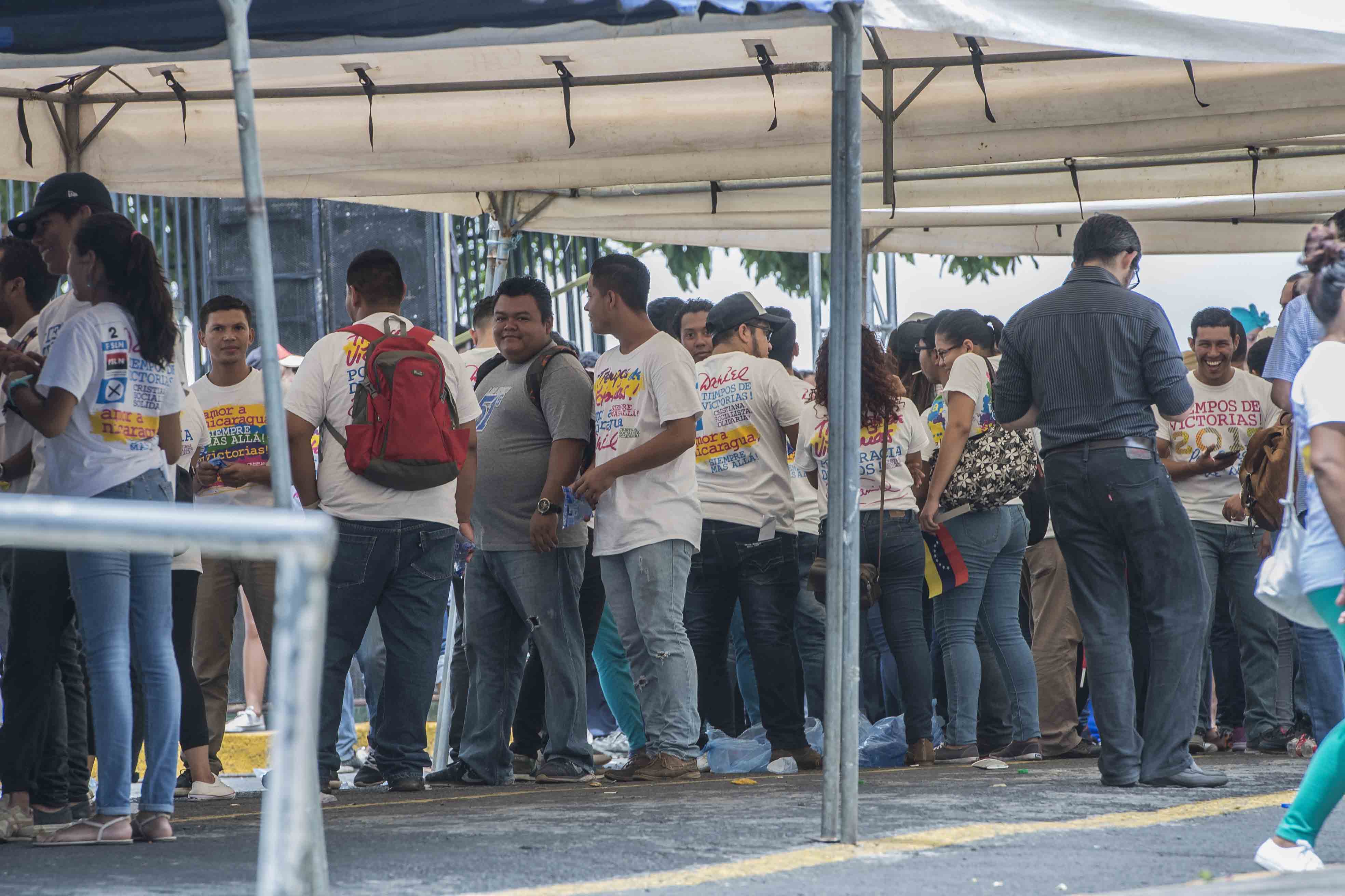 Managua, Nicaragua. 12/05/2017. Miembros de la Juventud sandinista realizan planton frente a la embajada de Venezuela en respaldo a Nicolas Maduro, la actividad estuvo custodiada por miembros de la Policia Nacional que una vez mas negaron el acceso a periodistas del diario La Prensa. Oscar Navarrete/ LA PRENSA.