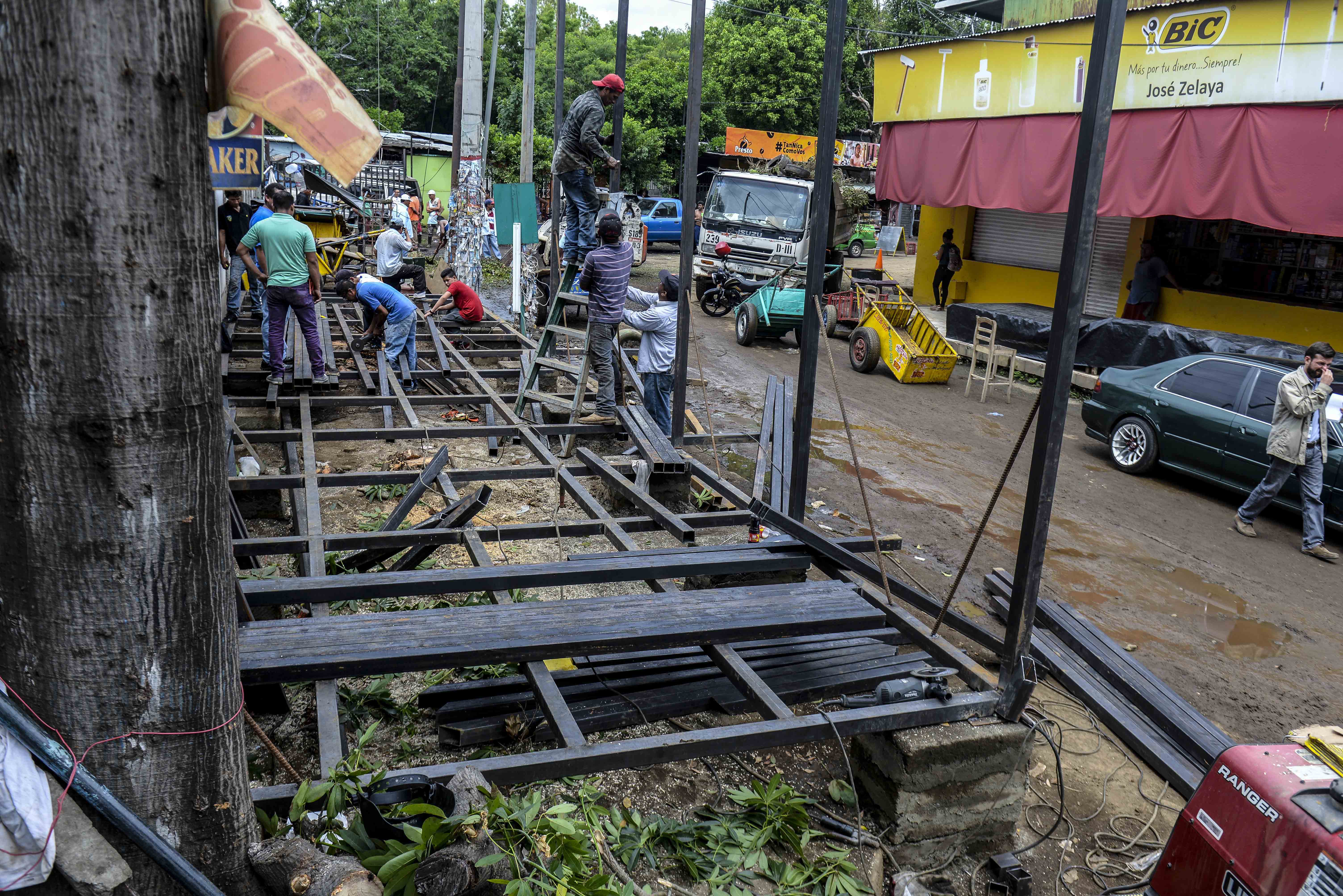 Paralelo a esto, obreros que sí pertenecen a la municipalidad terminan de retirar los escombros del galerón que se incendió el pasado 14 de mayo y se preparan para iniciar las obras de construcción. Mientras tanto, se desarrollan labores topográficas y de patroleo para levantar los módulos que tienen un presupuesto de 120 millones de córdobas.