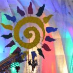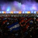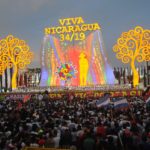 2016: Un gran sol metálico colorido y luminoso, banderas gigantes, 18 luminarias, 22 torres con equipos de sonido, una pantalla gigante de unos diez metros de altura fueron colocados por decenas de trabajadores estatales en la Plaza de la Fe Juan Pablo II para celebrar el aniversario 37 de la Revolución Sandinista. LA PRENSA/M.ESQUIVEL
