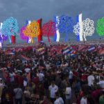 2017: La celebración del triunfo de la Revolución Popular Sandinista se convirtió en un caleidoscopio por donde se filtra la visión de la pareja presidencial. Tal como en los últimos tres años los coloridos árboles de la vida se han vuelto infaltables. No han corrido la suerte de la Concha Acústica y de la fuente luminosa. LA PRENSA/O.NAVARRETE