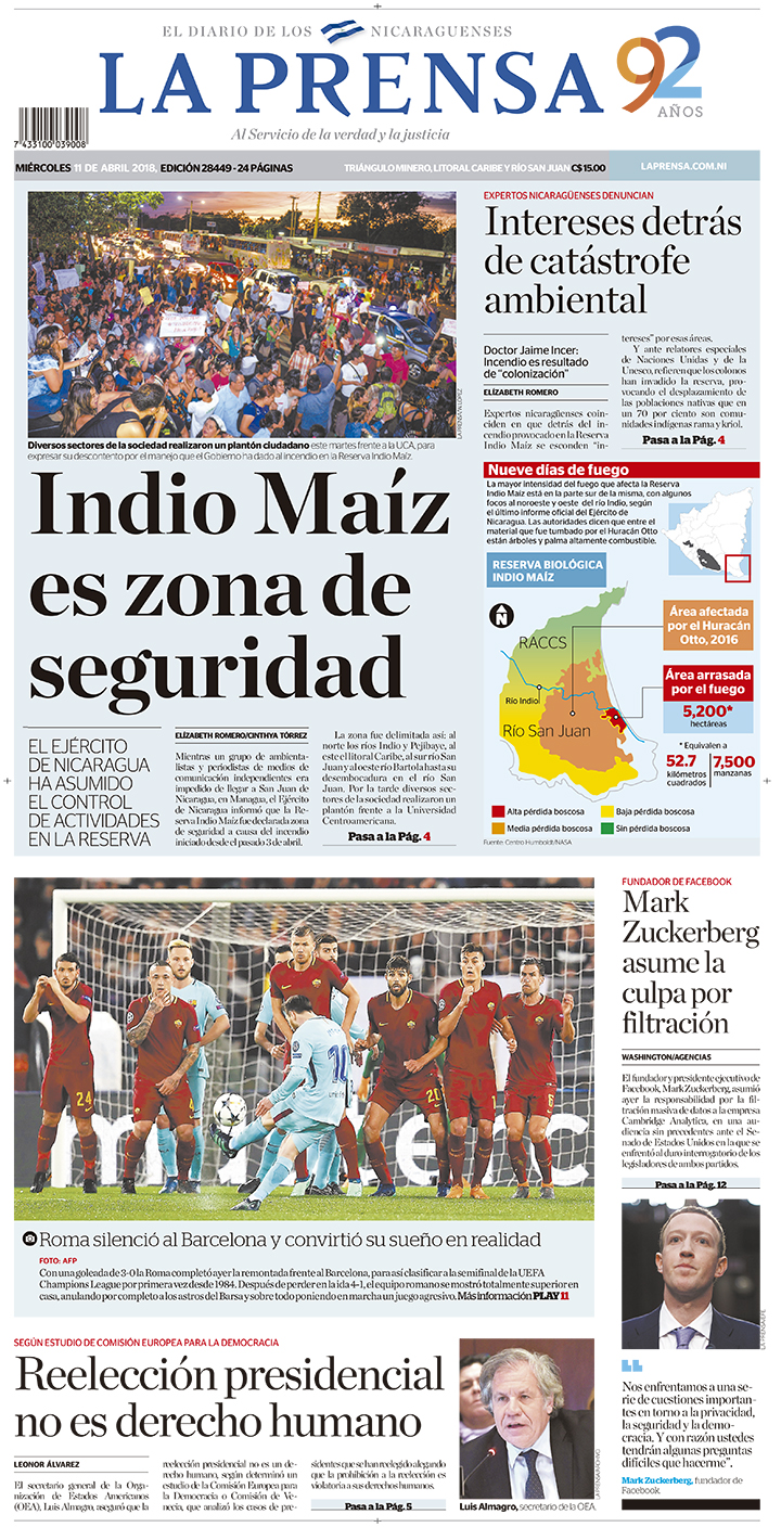 Esta es nuestra portada impresa para el día miércoles 11 de abril de 2018