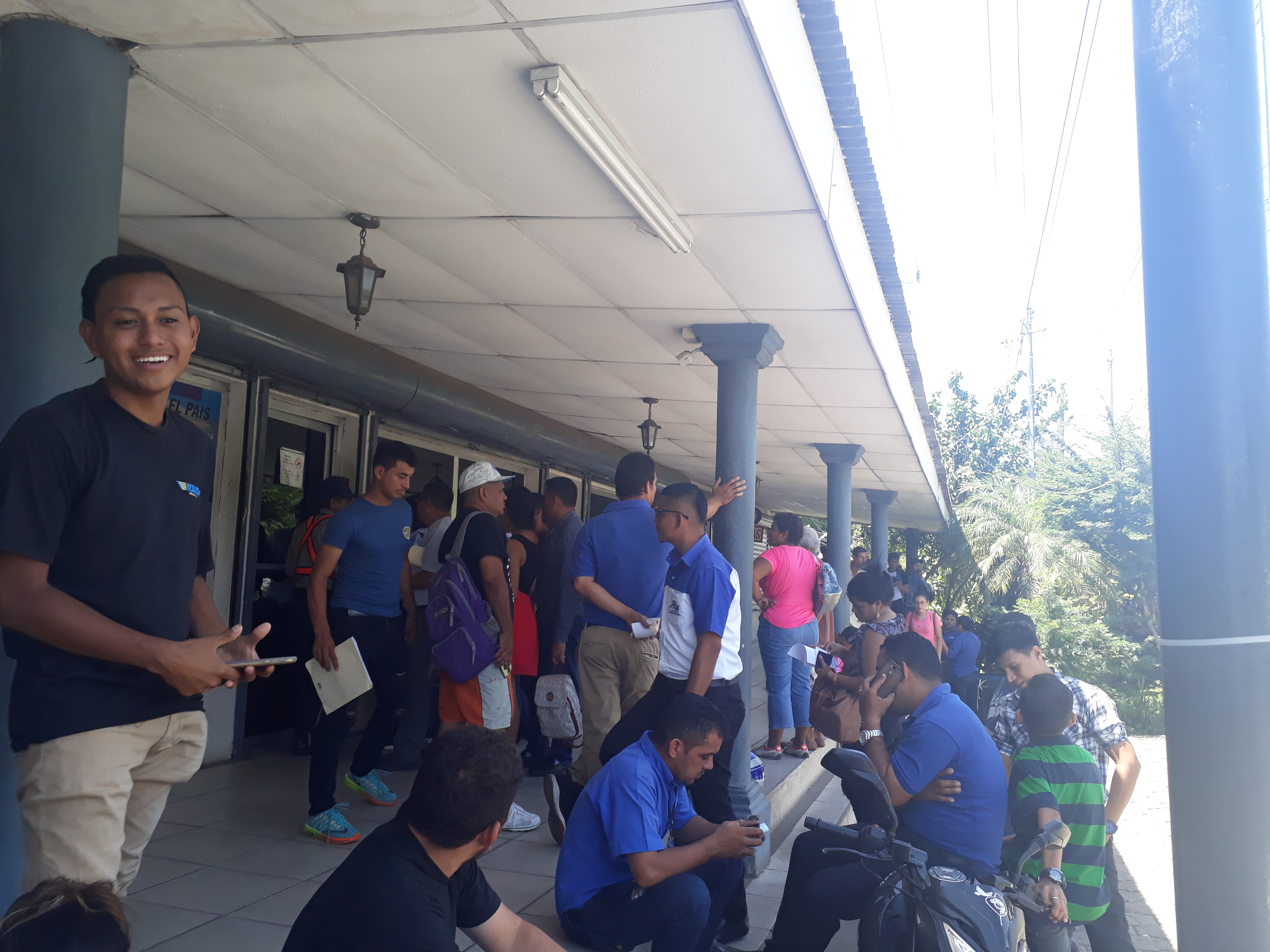 Las oficinas de Ministerio de Gobernación, en Chinandega, donde se encuentran las ventanillas de la Dirección de Migración y Extranjería. también ha estado llena pues, a diario, más de un centenar de pobladores, en su mayoría jóvenes, solicitan su pasaporte.