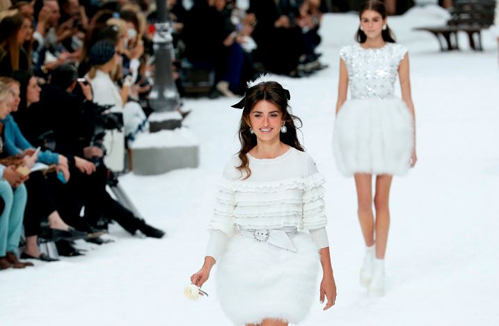 La actriz española Penélope Cruz, embajadora de Chanel, desfiló muy sonriente durante el desfile que la firma de moda organizó como un sentido homenaje a Karl Lagerfeld, despidiéndose así de su director artístico en un espectacular pase sobre la nieve en París.
