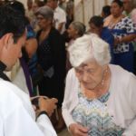 Una mujer llevó a su mascota a la misa que se realizó en la Catedral de Managu a. LA PRENSA/Uriel Molina