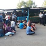 Las mujeres decidieron sentarse en la entrada de La Modelo a pesar de la presencia de agentes antidisturbios en el lugar. LA PRENSA/Martha Vasquez