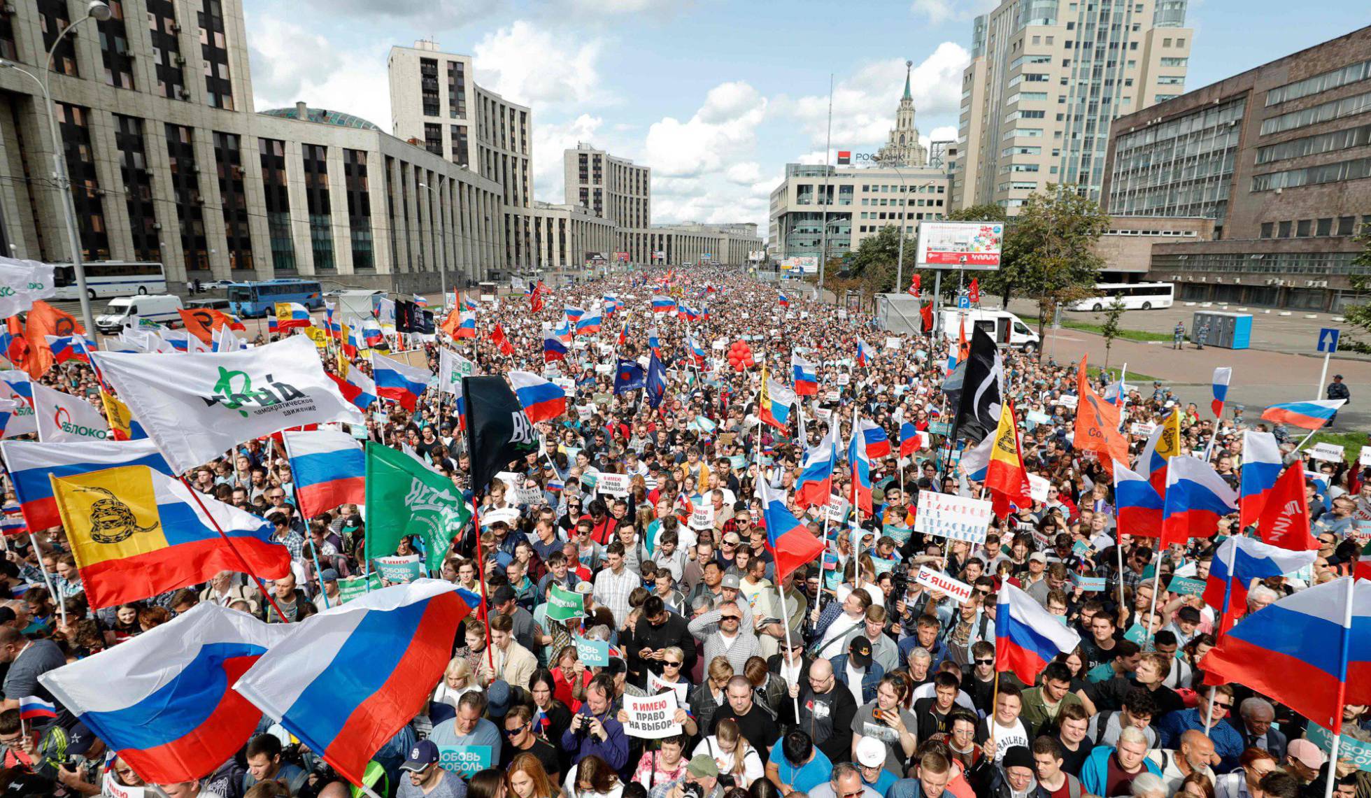 Más de 20,000 personas, incluidas figuras de la oposición rusa, se manifestaron este sábado en el centro de Moscú para reclamar elecciones locales libres y justas, al grito de «Rusia será libre» y «Es nuestra ciudad».