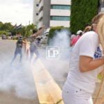 Lanzaron bombas aturdidoras contra los manifestantes cerca del edificio Movistar. LAPRENSA/J. Flores