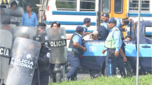12:55 p.m. Los manifestantes denuncian que la Policía Orteguista desde la tina de una patrulla lanza chibolas para atacar a los autoconvocados.