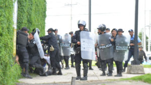 2:30 p.m. La Policía Orteguista reforzó la cantidad de antimotines en las afueras del edificio Pellas. Sin embargo, los autoconvocados continúan protestando.