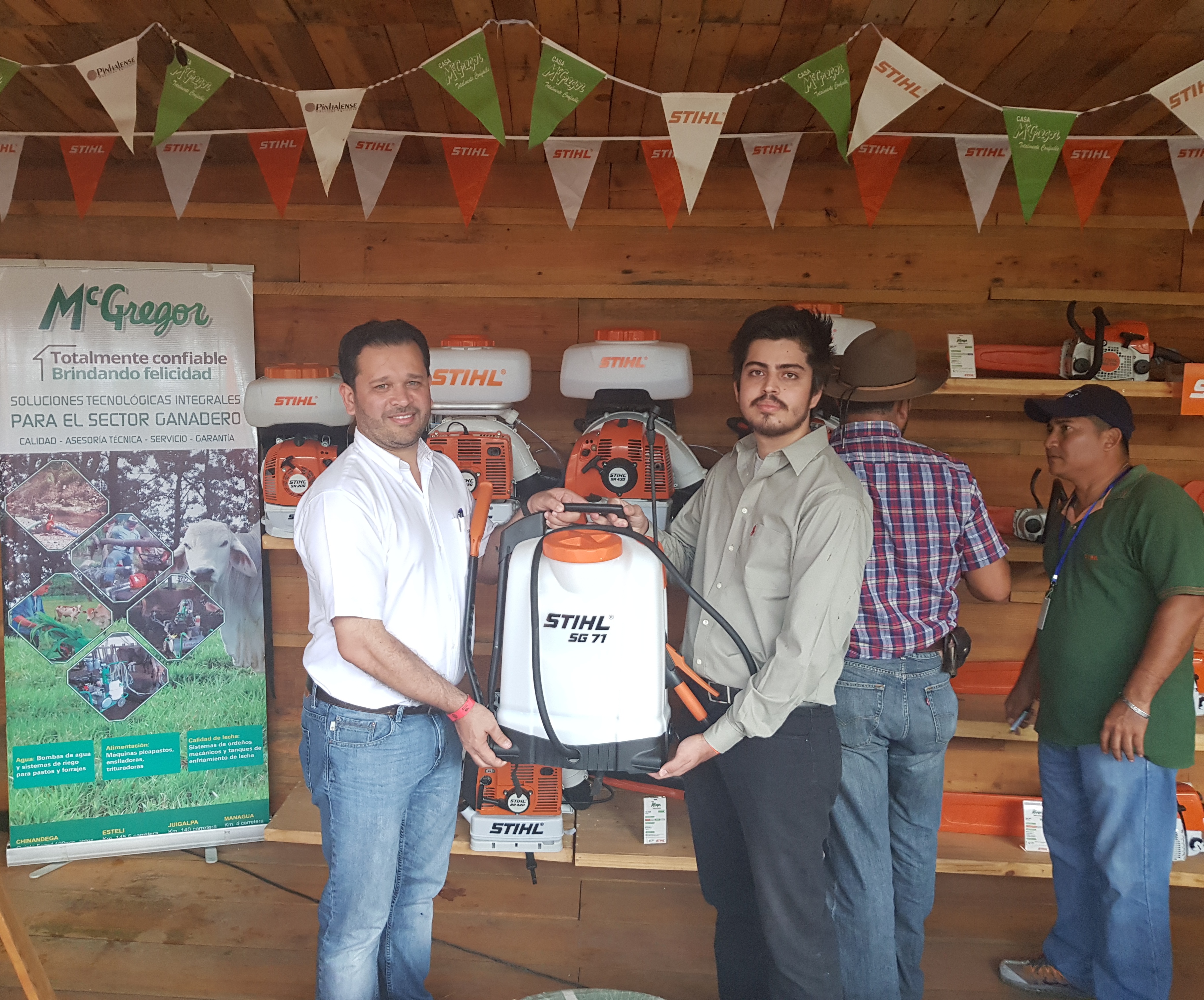 Rizo explicó que la fumigadora Stihl modelo SG 71 que sortearon es un equipo muy resistente, fabricada con polipropileno, tiene capacidad de 18-20 litros en el depósito de agua, un sistema de bomba que le permite bastante presión en el bombeo, por lo que no necesita un mayor esfuerzo de parte del operario. Asimismo, está diseñada de forma que se acomoda muy bien a la espalda, con correas de sujeción reforzadas y dentro del tapón, en la parte interna, tiene las medidas que se utilizan generalmente para las mezclas con agroquímicos, así como una manguera reforzada y muy flexible, que permite una mejor maniobrabilidad del operario.