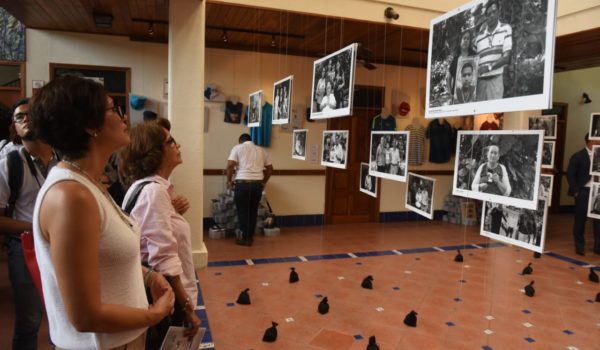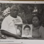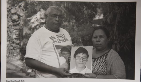 Una segunda sala, donde penden de nylon las fotografías en blanco y negro de los familiares sosteniendo la foto de su víctima. Como está foto donde aparecen los padres de Álvaro Conrado. LA PRENSA/R. FONSECA