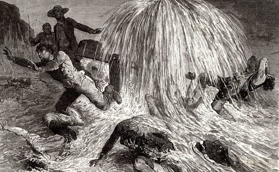 El mensaje había sido enviado, pero Drake aún no lo había recibido cuando su taladro perforó un depósito subterráneo lleno de petróleo crudo bajo presión. Desde 21 metros debajo de la superficie, el petróleo comenzó a brotar.