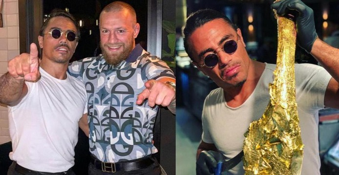 The Notorious aprovechó su estadía en los Emiratos Árabes para visitar el famoso restaurante de Nusret Gökce. El chef de nacionalidad turca, y mejor conocido en las redes como Salt Bae, se caracteriza por cocinarles a deportistas de élite o celebridades, en cualquiera de sus restaurantes al rededor del mundo. Esta vez el turno fue para McGregor, quien junto a su esposa e hijos degustaron un llamativo plato, no sólo por su valor, sino por sus ingredientes, después de todo no es normal ver una comida bañada en oro. El plato se llama Golden Tomahawk y es una carne de vaca japonesa, envuelta en una hoja de oro de 24 quilates. Su valor: mil dólares.