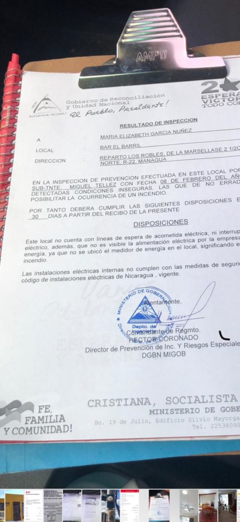 «Ellos (Bomberos) me extendieron una carta, después de la inspección, donde claramente dice que ese local no contaba con espera de acometida eléctrica, ni interrumpido eléctrico, tampoco con medidor. Esa instalación no cumplía con las medidas de seguridad. Ese mismo día, yo me fui a Disnorte-Dissur para que suspendieran el suministro de energía, pero hicieron caso omiso», denunció García.