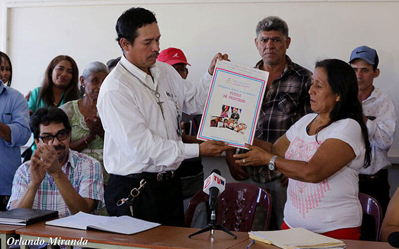 Tiene acuerdos con el gobierno para entrega de tierras, viviendas y otros beneficios agrícolas. Afirma que ya entregó las primeras 200 manzanas de tierra que el gobierno le entregó recientemente: “Yo peleo por los campesinos”.