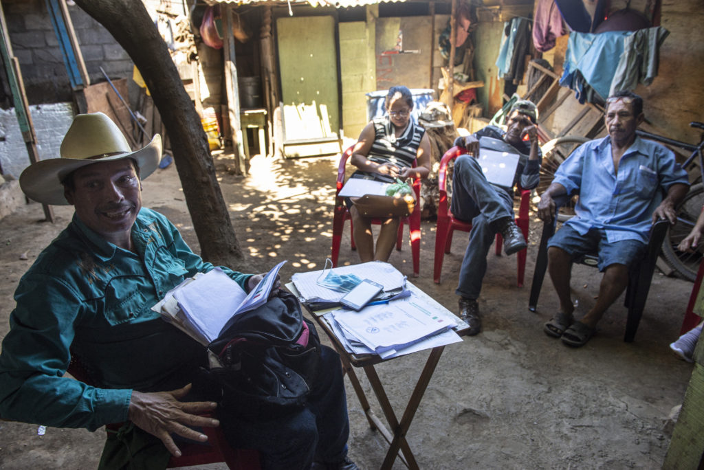 Mientras “acondiciona” otro lugar, en esa sala piso de tierra está la oficina de “Risita”, quien este miércoles 10 de febrero de 2021 estaba acompañado de ocho personas más que, dice él, conforman la junta directiva de la Asociación de Desmovilizados 22 de Marzo R. N. El reloj marcaba las 10:00 de la mañana cuando en la reunión Risita y sus acompañantes estaban tratando dos temas principales: cómo registrarse en el Ministerio de Gobernación (Migob) como agentes extranjeros y ver las tierras que el gobierno de Daniel Ortega les dará para que sean repartidas entre los desmovilizados de la Contra, el Ejército Sandinista y el extinto Ministerio del Interior (Mint).