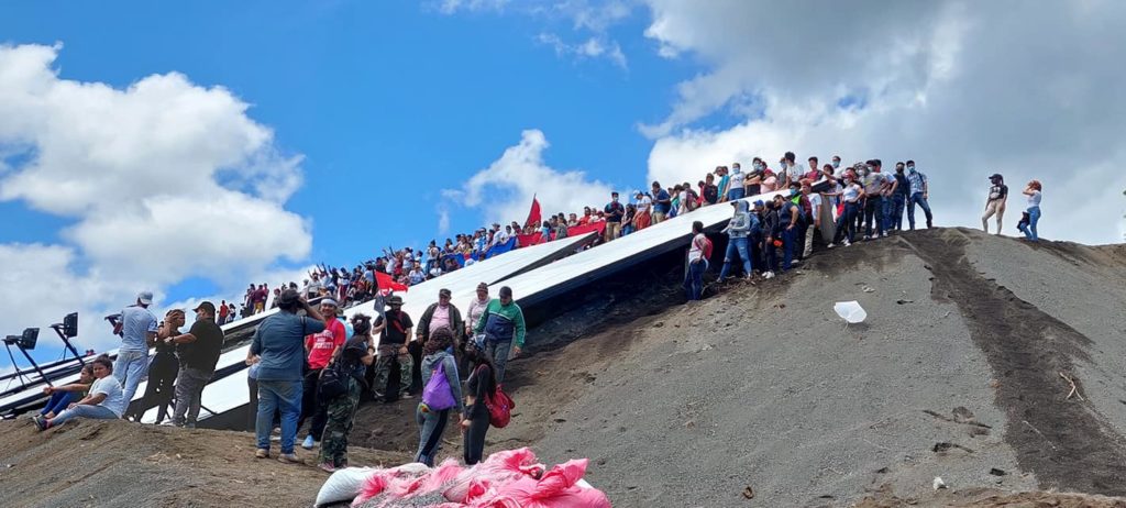 En las redes sociales de la Alcaldía de Ciudad Sandino se colgaron fotografías donde se observa la presencia de seguidores del orteguismo con banderas del partido bordeando las siglas del FSLN, que la dictadura volvió a instalar en el lugar, después que el gobierno de Arnoldo Alemán ordenara quitarlas.